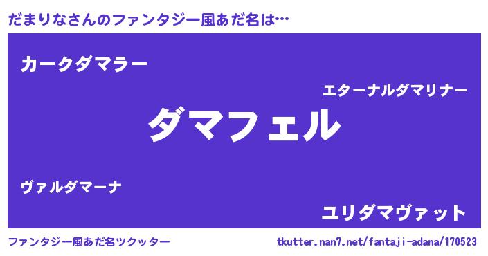 | 男性向けラノベタイトル風あだ名 | 『ダマリナアートオンライン』 |