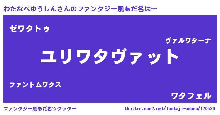| 男性向けラノベタイトル風あだ名 | 『転生したらわたなべゆうしんだった件』 |