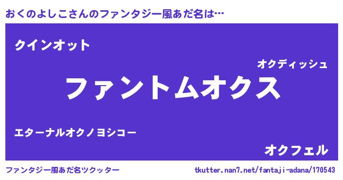| ポケモン風あだ名 | 『ヒオクノヨシコ』『オックウザ』 |