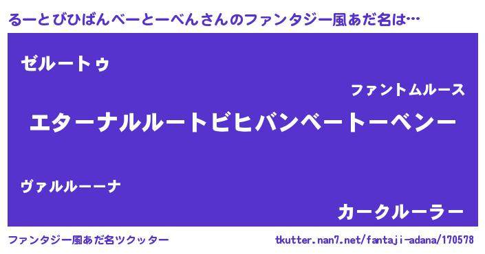 女子向けラノベタイトル風あだ名 | 『るーとびひばんべーとーべんの雑貨屋さん』 |