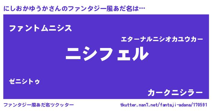 | 胡散臭い通販商品みたいなあだ名 | 『億万長者になれる霊験あらたかなお札…その名も「にしおかゆうか」』 |