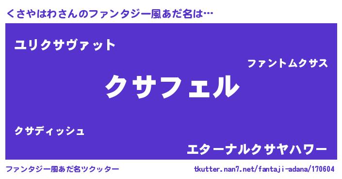 | ヒーロー風カッコイイあだ名 | 『スーパークサヤハワ』『暗黒騎士クサ』 |
