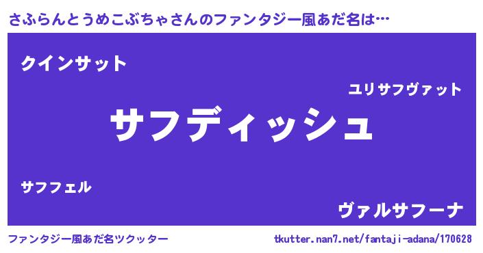 | 胡散臭い通販商品みたいなあだ名 | 『来世でも幸せになれる水素水…その名も「さふらんとうめこぶちゃ」』 |