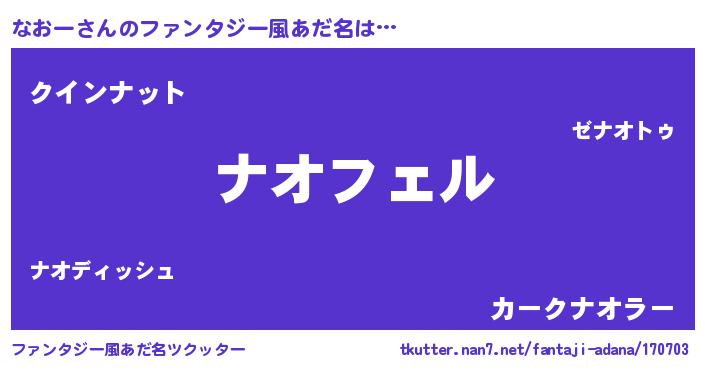 | 男性向けラノベタイトル風あだ名 | 『ナオーアートオンライン』 |