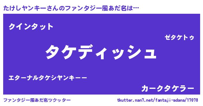 | 男性向けラノベタイトル風あだ名 | 『たけしヤンキーという概念が存在しない退屈な世界 』 |