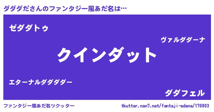 | ヒーロー風カッコイイあだ名 | 『天空の使者ダダダだ』『仮面ダダダー』 |