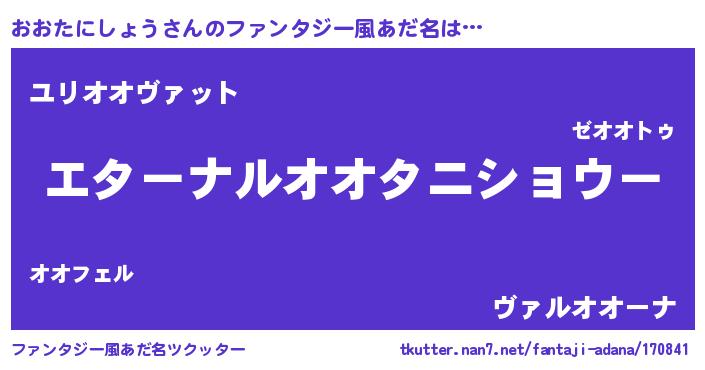 | 欧米人風あだ名 | 『おおたにしょうクリステル』 |