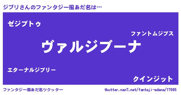 | 男性向けラノベタイトル風あだ名 | 『魔弾の王とジブリ』 |