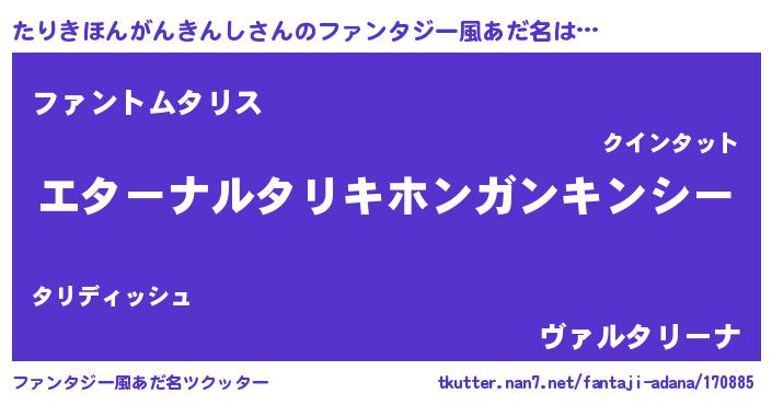 | 意味不明あだ名 | 『たりきほんがんきんしフォーエバー』 |