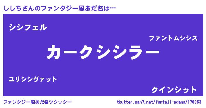 | ヒーロー風カッコイイあだ名 | 『スーパーシシチ』『正義の使者ししち』 |