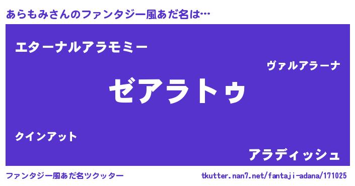 | 男性向けラノベタイトル風あだ名 | 『Re:あらもみから始める異世界生活』 |