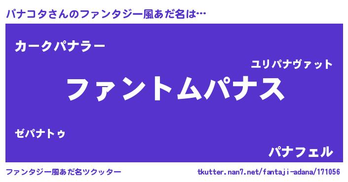 | 男性向けラノベタイトル風あだ名 | 『ダンジョンにパナコタを求めるのは間違っているだろうか』 |