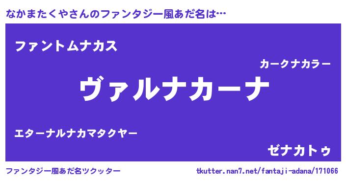 | 伝説のあだ名 | 『解き放たれた魔法使いなかまたくや』 |