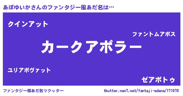 | 欧米人風あだ名 | 『あぼゆいか・ステッグマイヤー』 |