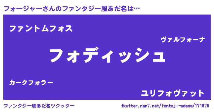 | ポケモン風あだ名 | 『フォゴンZ』『ゼニフォ』『フーォイ』 |
