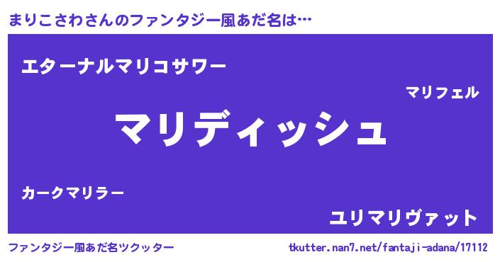 | 意味不明あだ名 | 『永久保存まりこさわ』 |