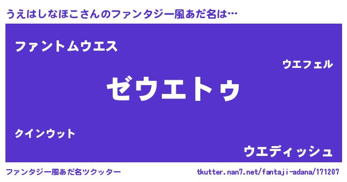 | ポケモン風あだ名 | 『ウエセウス』『ヒウエハシナホコ』 |