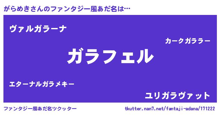 | 意味不明あだ名 | 『ペロリンがらめき』『永久保存がらめき』 |