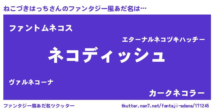 | ヒーロー風カッコイイあだ名 | 『ネオネコヅキハッチ』『幻影騎士ネコ』 |