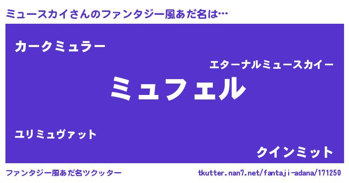 | ヒーロー風カッコイイあだ名 | 『スーパーミュースカイ』『幻影騎士ミュ』 |
