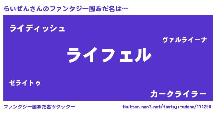 | 男性向けラノベタイトル風あだ名 | 『らいぜんの憂鬱』 |