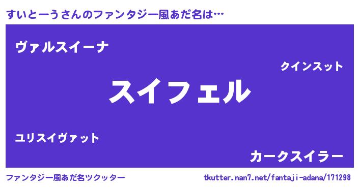 | 意味不明あだ名 | 『ペロリンすいとーう』『自称すいとーう』 |