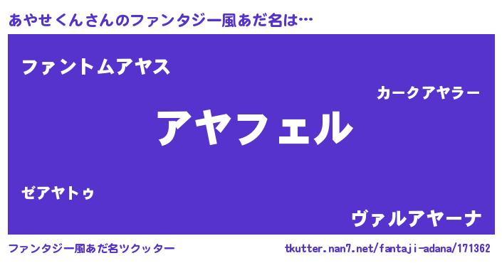 | ヒーロー風カッコイイあだ名 | 『スーパーアヤセクン』『天弓騎士アヤ』 |