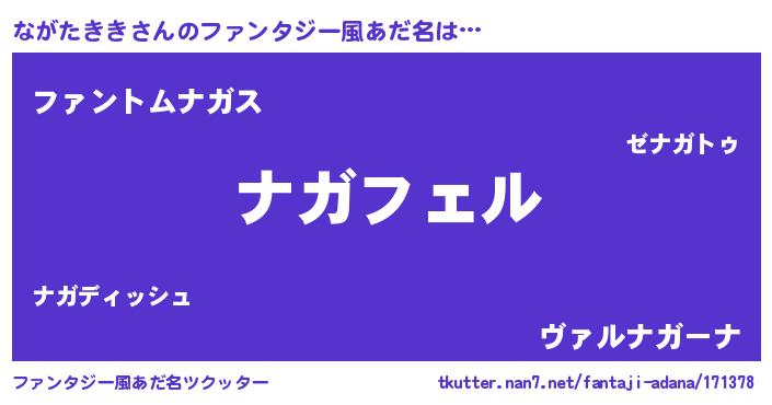 | 男性向けラノベタイトル風あだ名 | 『ナガタキキアートオンライン』 |