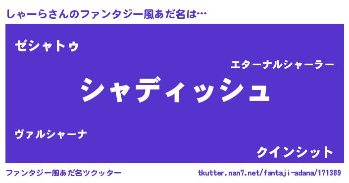 | 男性向けラノベタイトル風あだ名 | 『しゃーらという概念が存在しない退屈な世界 』 |