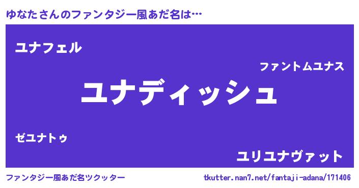 | ヘコむあだ名 | 『ゆなた(苦笑)』『ゆなもー』『豆乳』 |