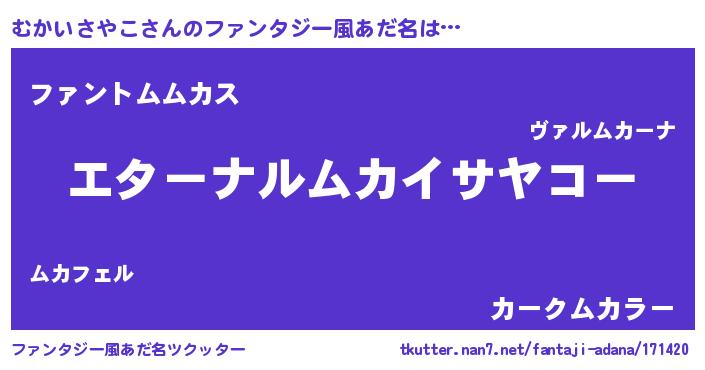 | ポケモン風あだ名 | 『ムカイダネ』『ヒムカイサヤコ』 |