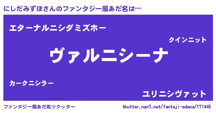 | 男性向けラノベタイトル風あだ名 | 『にしだみずほに滅ぼされるだけの簡単なお仕事です』 |