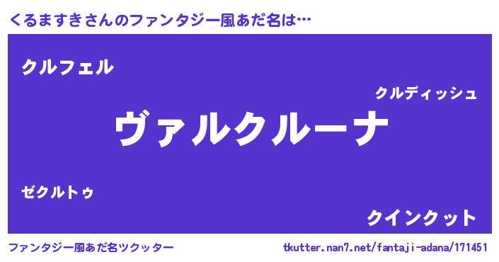 | 男性向けラノベタイトル風あだ名 | 『この素晴らしい世界にくるますきを!』 |