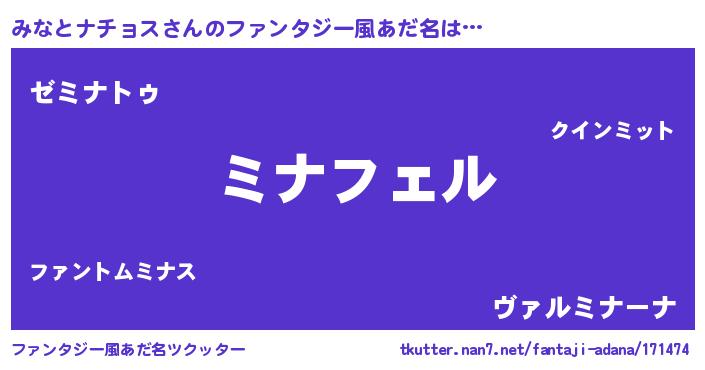 | ヒーロー風カッコイイあだ名 | 『スーパーミナトナチョス』 |