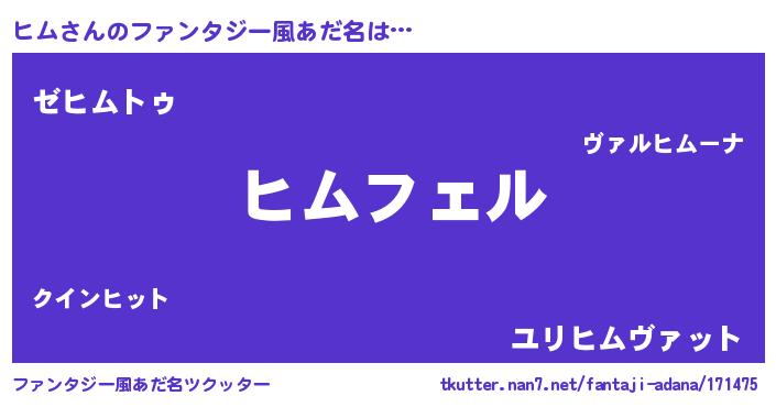 | 意味不明あだ名 | 『ペロリンヒム』『自称ヒム』 |