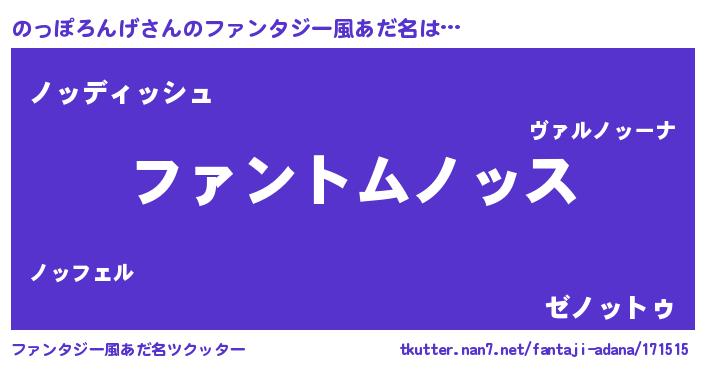 | 女子向けラノベタイトル風あだ名 | 『のっぽろんげの卵を拾いまして』 |