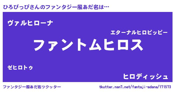 | 男性向けラノベタイトル風あだ名 | 『ひろぴっぴの嫁は女の子じゃないと思った?』 |