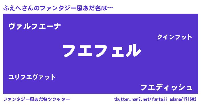 | 男性向けラノベタイトル風あだ名 | 『フエヘアートオンライン』 |