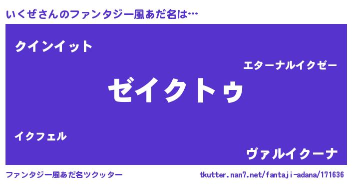 | ヒーロー風カッコイイあだ名 | 『究極戦士イクゼ』『慈愛の使者いくぜ』 |
