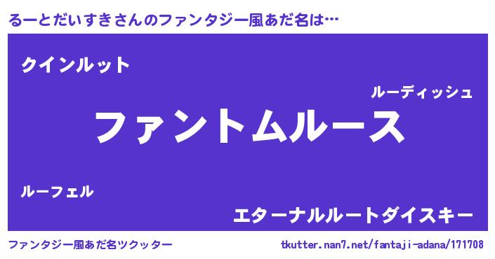 | 男性向けラノベタイトル風あだ名 | 『るーとだいすきの嫁は女の子じゃないと思った?』 |