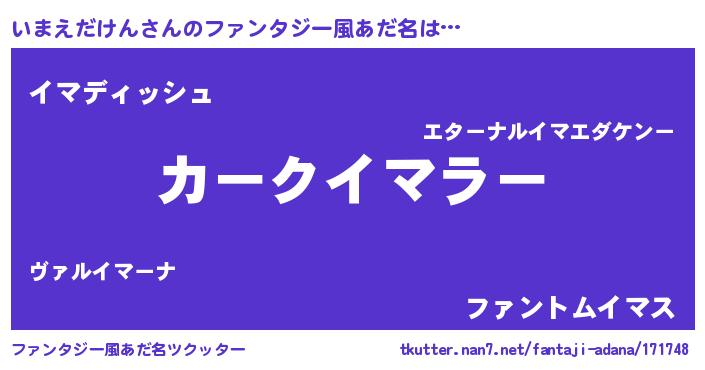| ヒーロー風カッコイイあだ名 | 『ネオイマエダケン』『魔戒騎士イマ』 |