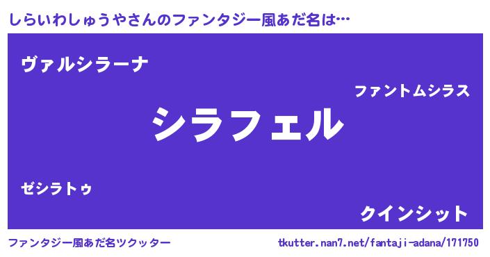 | 伝説のあだ名 | 『伝説のスナイパーしらいわしゅうや』 |