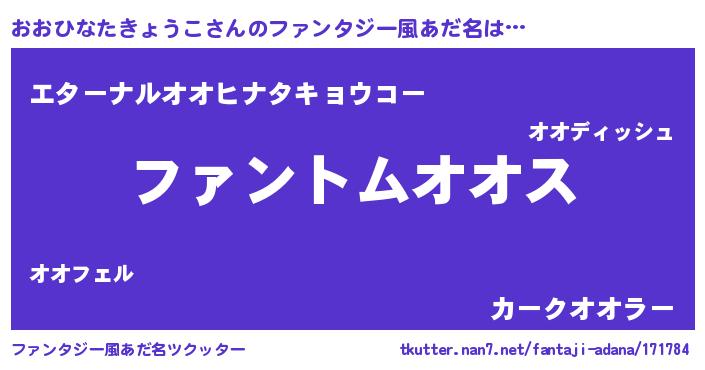 | 意味不明あだ名 | 『とにかく怪しいおおひなたきょうこ』 |
