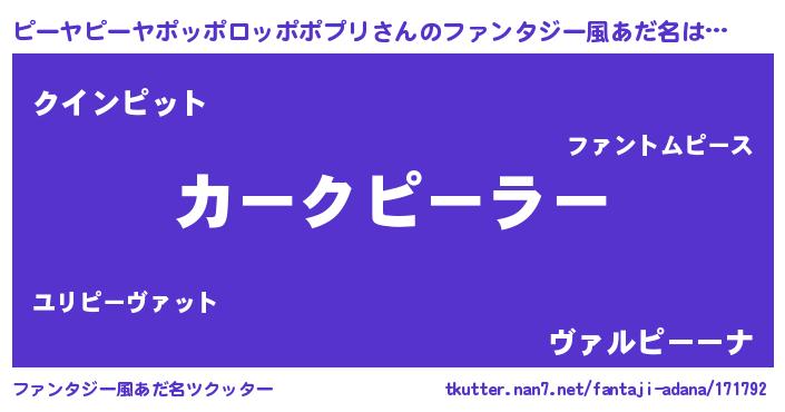 | 男性向けラノベタイトル風あだ名 | 『うちのピーヤピーヤポッポロッポポプリが世界を掌握している!』 |