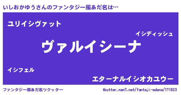 | 男性向けラノベタイトル風あだ名 | 『この素晴らしい世界にいしおかゆうを!』 |