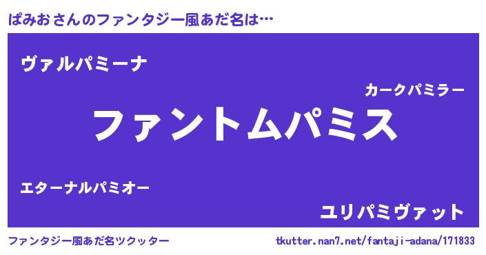 | 女子向けラノベタイトル風あだ名 | 『ぱみお様がみてる』 |