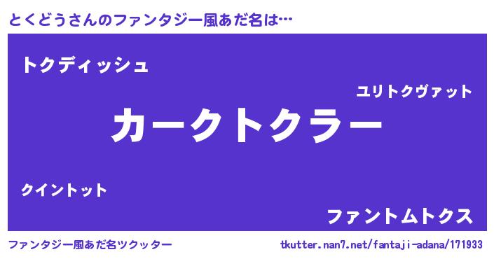 | 欧米人風あだ名 | 『とくどう・ステッグマイヤー』 |