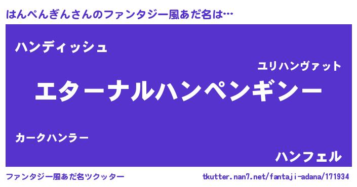 | 欧米人風あだ名 | 『はんぺんぎんクリステル』 |