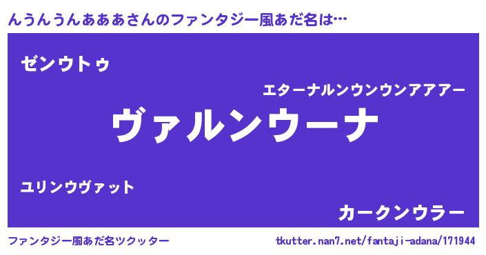 | 男性向けラノベタイトル風あだ名 | 『この素晴らしい世界にんうんうんあああを!』 |