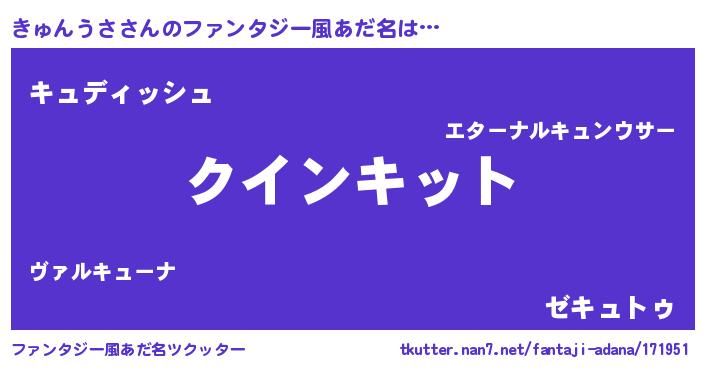 | ヒーロー風カッコイイあだ名 | 『慈愛の使者きゅんうさ』『仮面キュダー』 |